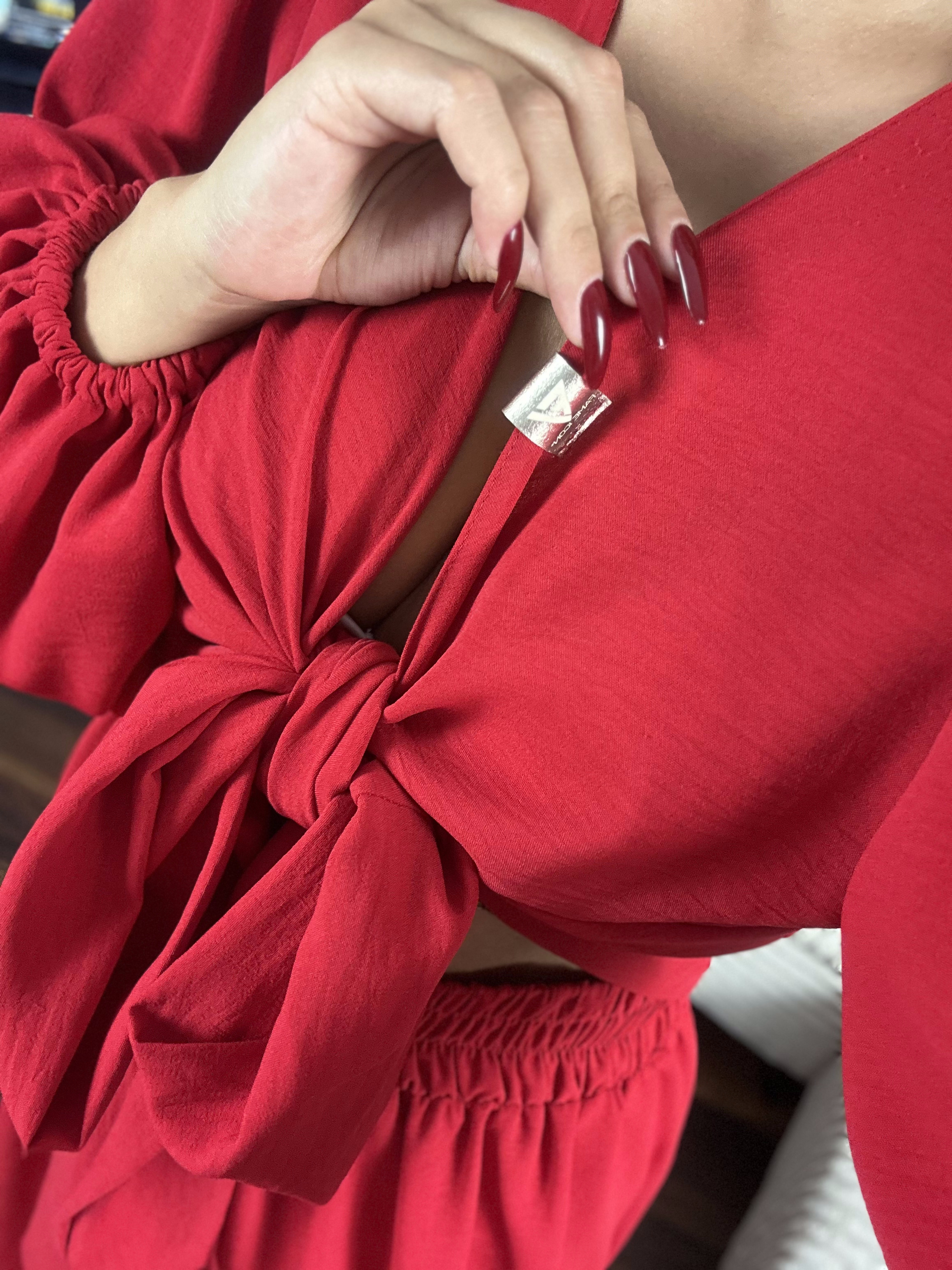 Opis produktu i rozmiarKomplet TESS – spodnie + wiązana koszulka