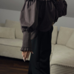 Jej największym atutem są efektowne rękawy – szerokie, lekko bufiaste, zakończone długim mankietem, które dodają całości wyjątkowego charakteru.