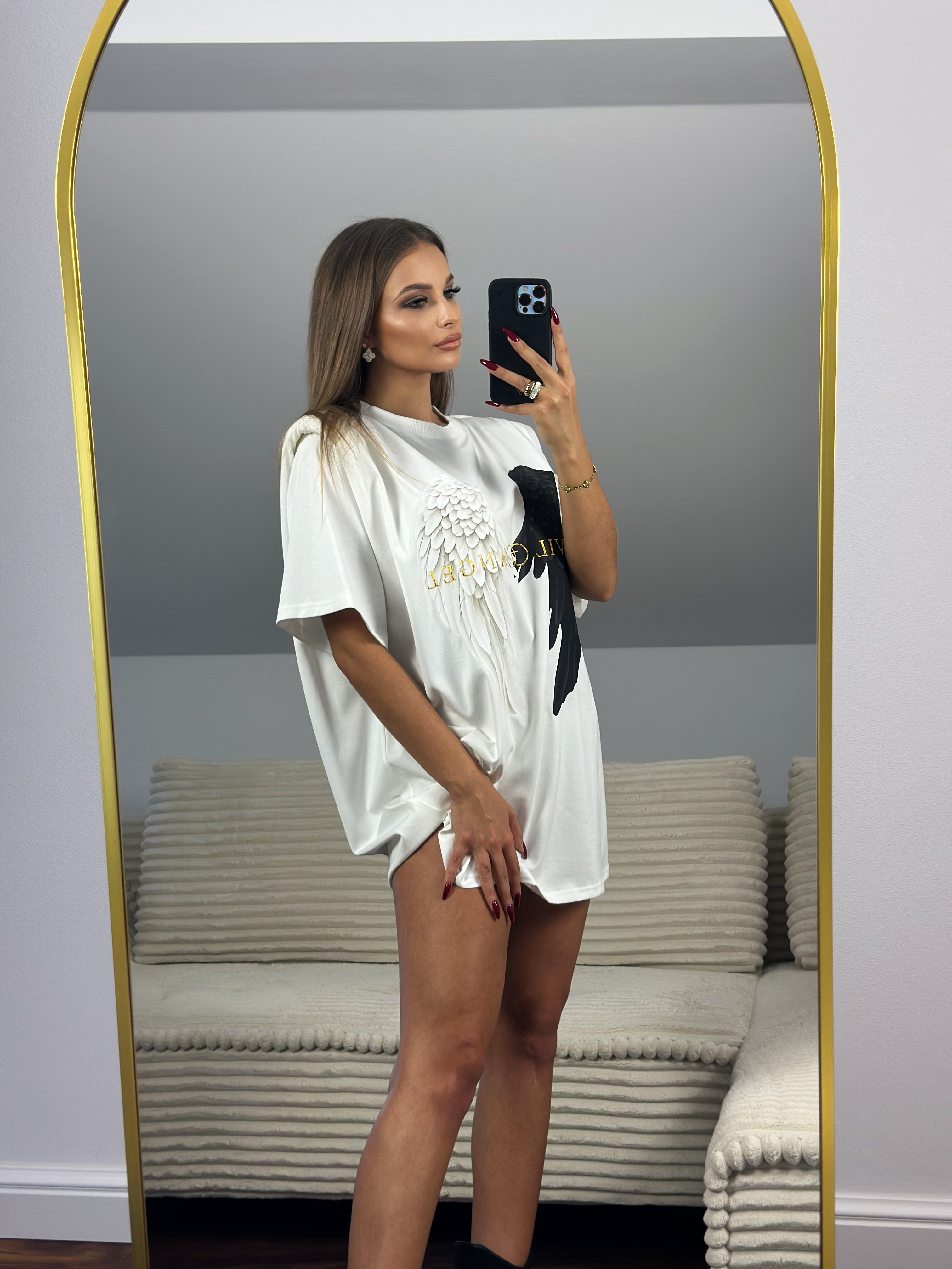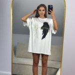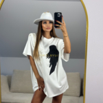 Totalny HIT sezonu – oversize’owy T-shirt, który możesz nosić zarówno klasycznie, jak i w formie sukienki.